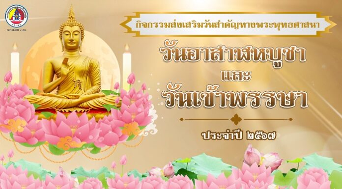 เนื่องในเทศกาลวันสำคัญวันอาสาฬหบูชา และวันเข้าพรรษา ประจำปี 2567 ขอเชิญพุทธศาสนิกชนร่วมกิจกรรมทางศาสนา ร่วมกันทำความดี ละเว้นความชั่ว ร่วมกันสืบสานวิถีพุทธ ส่งเสริมประเพณีวัฒนธรรมที่ดีงาม