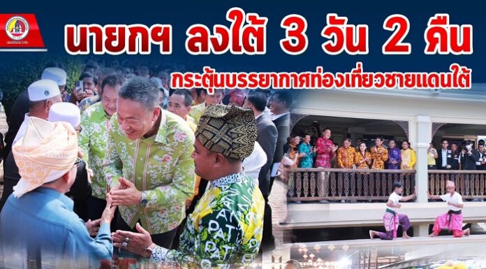 นายกฯ ลงใต้ 3 วัน 2 คืน กระตุ้นบรรยากาศท่องเที่ยวชายแดนใต้ ครอบคลุมมิติการพัฒนาเศรษฐกิจ และความมั่นคงสงบสุขในพื้นที่