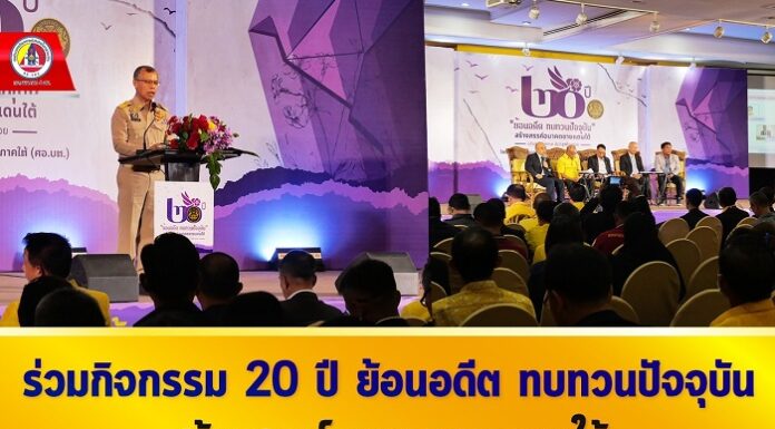 รอง ผอ.รมน.ภาค 4 สน. ร่วมกิจกรรม “20 ปี ย้อนอดีต ทบทวนปัจจุบัน สร้างสรรค์อนาคตชายแดนใต้” ผนึกกำลังทุกภาคส่วน เน้นการมีส่วนร่วมแก้ไขปัญหาทั่วถึงครอบคลุมทุกมิติ ตามกระบวนการยุติธรรม