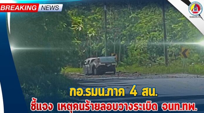 ทั้งนี้ กองอำนวยการรักษาความมั่นคงภายในภาค 4 ส่วนหน้า ขอความร่วมมือพี่น้องประชาชนในพื้นที่ หากผู้ใดพบเบาะแส หรือพบวัตถุต้องสงสัย รวมถึงบุคคลต้องสงสัยเข้ามาเคลื่อนไหวในพื้นที่ สามารถแจ้งได้ที่หมายเลขโทรศัพท์สายตรง...