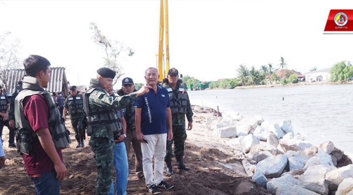 เมื่อวันที่ 27 มิถุนายน 2567 ที่จุดก่อสร้างเขื่อนป้องกันตลิ่ง อำเภอตากใบ จังหวัดนราธิวาส พลตรี เฉลิมพร ขำเขียว ผู้บัญชาการกองพลทหารราบที่ 15 / ผู้บังคับกองบังคับการควบคุมสุริโยทัย เดินทางลงพื้นที่ ตรวจความคืบหน้า การก่อสร้างเขื่อนป้องกันตลิ่งริมแม่น้ำโก-ลก จังหวัดนราธิวาส และโครงการรั้วมั่นคงอิเล็กทรอนิกส์ (เสนอโครงการที่ 2) โดยได้รับฟังบรรยายสรุปโครงการติดตั้งระบบกล้องโทรทัศน์วงจรปิดพร้อมอุปกรณ์ สำหรับก่อสร้างรั้วความมั่นคงอิเล็กทรอนิกส์ ตามแนวชายแดนไทย - มาเลเซีย ด้านอำเภอตากใบ ,อำเภอสุไหงโก-ลก และ อำเภอแว้ง จังหวัดนราธิวาส พร้อมทั้ง ลงพื้นที่ประชาสัมพันธ์ สร้างความเข้าใจ ให้แก่พี่น้องประชาชนในชุมชน ซึ่งอาศัยอยู่ริมแม่น้ำสุไหงโก-ลก เพื่อให้ทราบถึงเหตุผลความจำเป็น ในการสร้างการก่อสร้างเขื่อนป้องกันตลิ่งริมแม่น้ำโก-ลก จังหวัดนราธิวาส