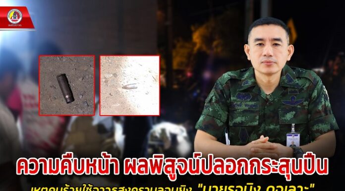 กอ.รมน.ภาค 4 สน. ชี้แจงความคืบหน้า ผลพิสูจน์ปลอกกระสุนปืน เหตุคนร้ายใช้อาวุธปืนสงครามลอบยิง นายรอนิง ดอเลาะ ผู้ประสานงานกลุ่มด้วยใจ ในพื้นที่ อ.ยะรัง จ.ปัตตานี พบเชื่อมโยงหลายคดีในพื้นที่ จชต.