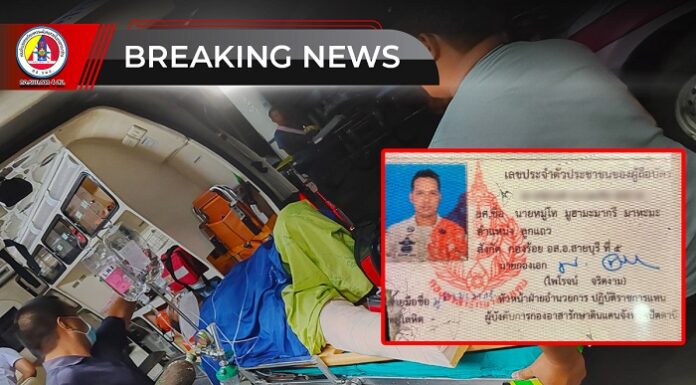 กอ.รมน.ภาค 4 สน. รายงานเหตุ คนร้ายใช้อาวุธปืนลอบยิง จนท.อส. ได้รับบาดเจ็บ ในพื้นที่ อ.สายบุรี จ.ปัตตานี