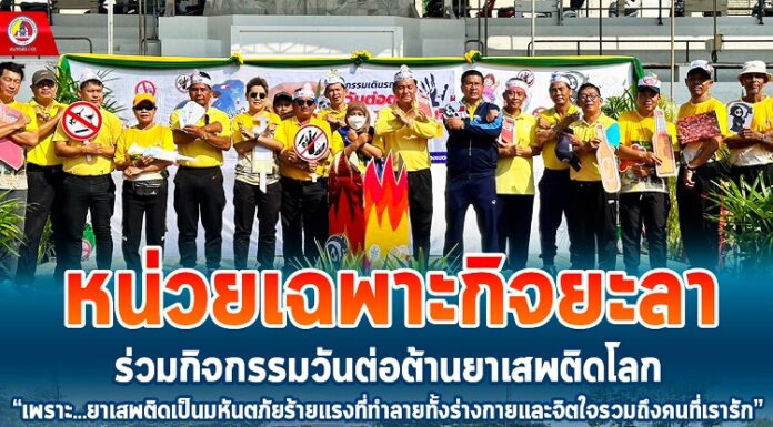 หน่วยเฉพาะกิจยะลาร่วมกิจกรรมวันต่อต้านยาเสพติดโลก ”เพราะ…ยาเสพติดเป็นมหันตภัยร้ายแรงที่ทำลายทั้งร่างกายและจิตใจรวมถึงคนที่เรารัก” ณ เทศบาลเมืองเบตง จ.ยะลา