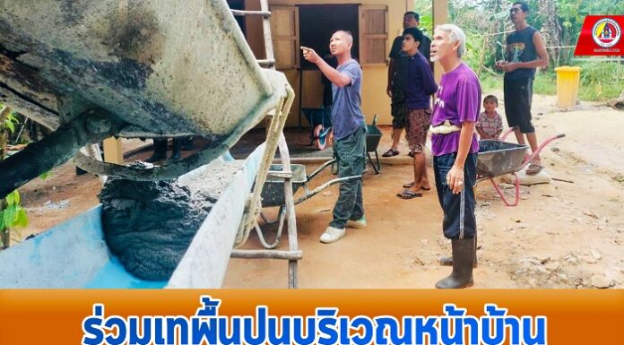 ทหารพราน 49 ร่วมกับผู้นำในพื้นที่ ร่วมเทพื้นปูนบริเวณหน้าบ้านให้กับผู้ยากไร้ ยกระดับคุณภาพชีวิตพี่น้องประชาชนในพื้นที่