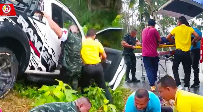 ทหาร ร.152 เข้าช่วยเหลือผู้ประสบอุบัติเหตุรถยนต์เสียหลักตกไหล่ทางถนนหมายเลข 410 บ้านยีลาปัน ตำบลตลิ่งชัน อำเภอบันนังสตา จังหวัดยะลา