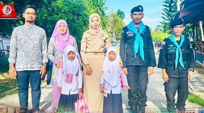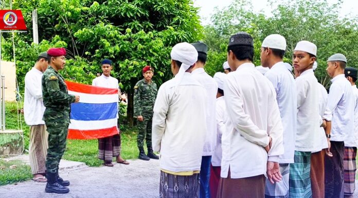 หน่วยเฉพาะกิจสันติสุข ลงพื้นที่จัดกิจกรรมเสาธง 5 นาที หน้าที่พลเมือง 9 ข้อ เพื่อสร้างความภูมิใจในแผ่นดินไทยให้นักเรียนในพื้นที่ จชต.