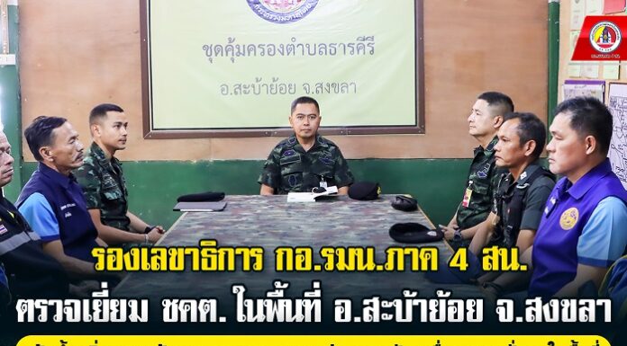 รองเลขาธิการ กอ.รมน.ภาค 4 สน. ตรวจเยี่ยม ชคต. ในพื้นที่ อ.สะบ้าย้อย จ.สงขลา เน้นย้ำ เพิ่มความเข้มงวด บูรณาการภาคประชาชนขับเคลื่อนความมั่นคงในพื้นที่
