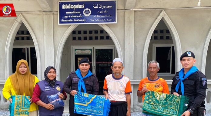 วันที่ 3 มิถุนายน 2567 หน่วยเฉพาะกิจกรมทหารพรานที่ 41 จัดกำลังพล กองร้อยทหารพรานที่ 4109 ร่วมกับ ผู้นำท้องที่ ลงพื้นที่ไปยังมัสยิดซีรอฎลยันนะห์ดาแลกือบน หมู่ที่ 4 ตำบลจะกว๊ะ อำเภอรามัน จังหวัดยะลา เพื่อพบปะเยี่ยมเยียนสานสัมพันธ์กับผู้นำศาสนาในพื้นที่ พร้อมทั้งมอบพรมปูละหมาดและผ้าละหมาดสำหรับใช้ในการปฏิบัติศาสนกิจของชาวไทยมุสลิม โดยกองร้อยทหารพรานที่ 4109 สนับสนุนพรมปูละหมาดและผ้าละหมาดในครั้งนี้ต้องการให้พี่น้องชาวไทยที่นับถือศาสนาอิสลามได้ประกอบศาสนกิจตามความศรัทธา และสร้างสังคมพหุวัฒนธรรมที่หลากหลายในพื้นที่จังหวัดชายแดนภาคใต้อย่างยั่งยืนต่อไป