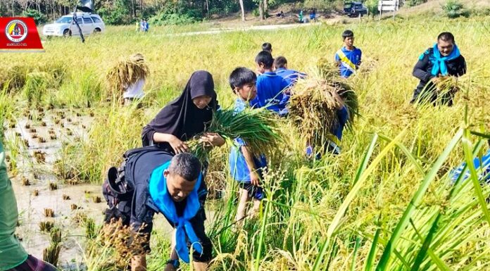 เมื่อวันที่ 20 กุมภาพันธ์ 2567 ที่ แปลงนาเกษตรชุมชน บ้านป่าทุ่ง หมู่ที่ 4 ตำบลบางเก่า อำเภอสายบุรี จังหวัดปัตตานี หน่วยเฉพาะกิจกรมทหารพรานที่ 44 จัดกำลังพล ร่วมกับ ส่วนราชการที่เกี่ยวข้อง ประชาชน และบุคลากรทางการศึกษาโรงเรียนบ้านป่าทุ่ง ร่วมจัดกิจกรรม “สานสัมพันธ์ชาวบางเก่า ร่วมลงแขกเกี่ยวข้าว ส่งเสริมอาชีพเกษตรกรแบบยั่นยืน” โดยการลงแขกเกี่ยวข้าวซึ่งเป็นวิถีชีวิตแบบดั้งเดิม เพื่อเป็นการอนุรักษ์การเก็บข้าวโดยใช้แกะในการเก็บข้าวเป็นรวง การใช้เคียวเก็บข้าว เพื่อเป็นการอนุรักษ์ประเพณี วิถีชาวไทยในพื้นที่ และเป็นการปลูกฝังให้อนุชนรุ่นหลังได้สืบทอด อีกทั้งยังเป็นการเสริมสร้างความรัก ความสามัคคีภายในชุมชน ภายใต้วิถีการปฏิบัติแบบ “สังคมพหุวัฒนธรรม” โดยมี นายวิรัตน์ บุญจันทร์ นายอำเภอสายบุรี เป็นประธาน