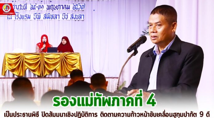รอง มทภ.4 เป็นประธานพิธี ปิดสัมมนาเชิงปฏิบัติการ ติดตามความก้าวหน้าขับเคลื่อนฮูกุมปากัต 9 ดี ในสถานศึกษา (กม.น้อย) นำร่อง รร.ในพื้นที่ปัตตานี เพื่อขยายผลสู่การสร้างความเข้มแข็ง