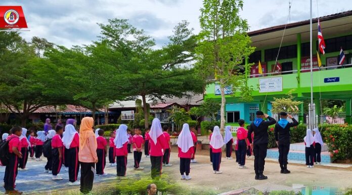 ฉก.ยะลา จัดกิจกรรม “เสาธง 5 นาที” พร้อมมอบธงชาติไทยผืนใหม่ ทดแทนผืนเก่าที่ชำรุดแก่สถานศึกษาพื้นที่ จ.ยะลา