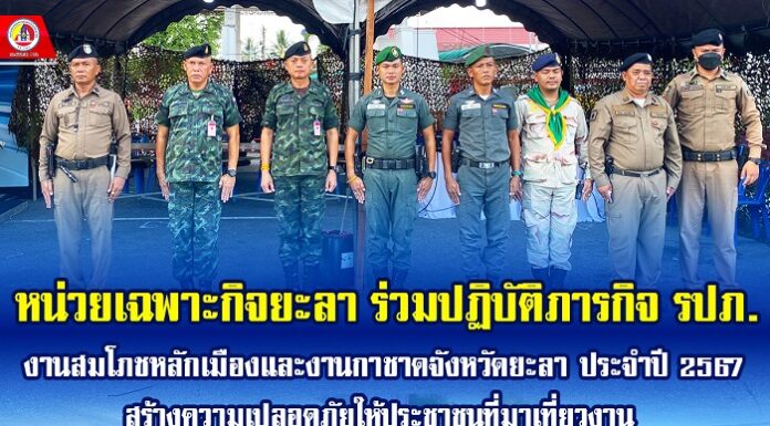 หน่วยเฉพาะกิจยะลา ร่วมปฏิบัติภารกิจ รปภ. สร้างความเชื่อมั่น ให้กับประชาชนที่จะมาเที่ยวงานสมโภชหลักเมืองและงานกาชาดจังหวัดยะลา ประจำปี 2567