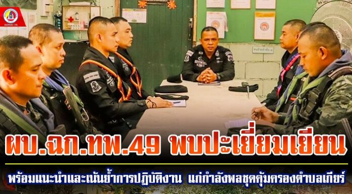 ผบ.ฉก.ทพ.49 พบปะเยี่ยมเยียน พร้อมแนะนำและเน้นย้ำการปฏิบัติงานแก่กำลังพลชุดคุ้มครองตำบลเกียร์