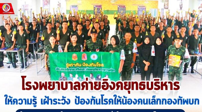 โรงพยาบาลค่ายอิงคยุทธบริหาร ลงพื้นที่ให้ความรู้ เฝ้าระวัง ป้องกันโรคให้น้องคนเล็กกองทัพบกในหน่วยฝึกทหารใหม่ ร.153 พัน.2 เพื่อให้ปลอดภัยจากโรคลมร้อน