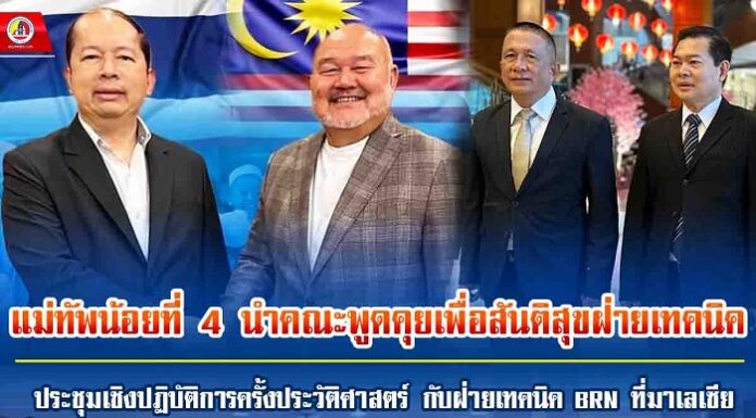 แม่ทัพน้อยที่ 4 นำคณะพูดคุยเพื่อสันติสุขฝ่ายเทคนิค ประชุมเชิงปฏิบัติการครั้งประวัติศาสตร์ กับฝ่ายเทคนิค BRN ที่มาเลเซีย เพื่อวางกรอบแผนการทำงานใน TOR ก่อนร่วมเดินหน้าลดสถานการณ์ความรุนแรงใน จชต.