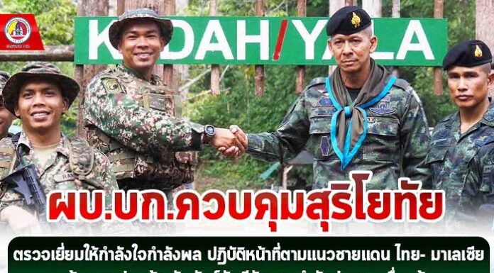 ผบ.บก.ควบคุมสุริโยทัยตรวจเยี่ยมให้กำลังใจกำลังพลปฎิบัติหน้าที่ตามแนวชายแดน ไทย- มาเลเซีย พร้อมพบปะ สร้างสัมพันธ์อันดีกับกองกำลังประเทศเพื่อนบ้าน