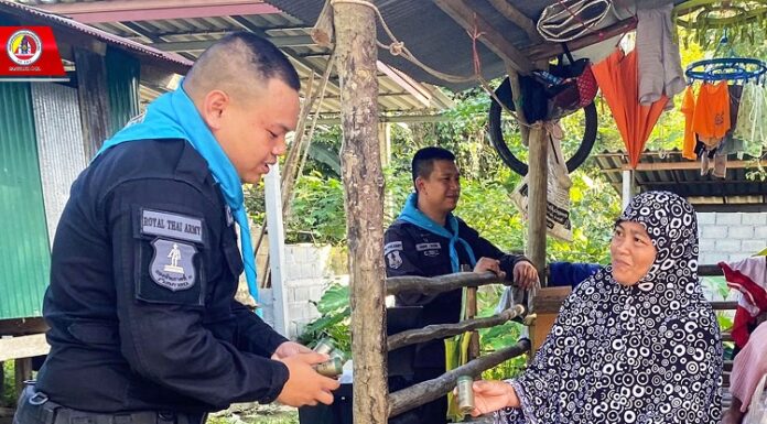 หน่วยเฉพาะกิจกรมทหารพรานที่ 33 จัดกำลังพล กองร้อยทหารพรานที่ 3305 และชุดหมอเดินเท้า ลงพื้นที่บ้านเขาน้ำตก หมู่ที่ 7 ตำบลตลิ่งชัน อำเภอบันนังสตา จังหวัดยะลา เพื่อพบปะ เยี่ยมเยียนสอบถามสารทุกข์สุขดิบของประชาชนในพื้นที่ พร้อมแจกจ่ายยาสามัญประจำบ้าน และให้คำแนะนำในการดูแลสุขภาพเบื้องต้นให้กับประชาชน