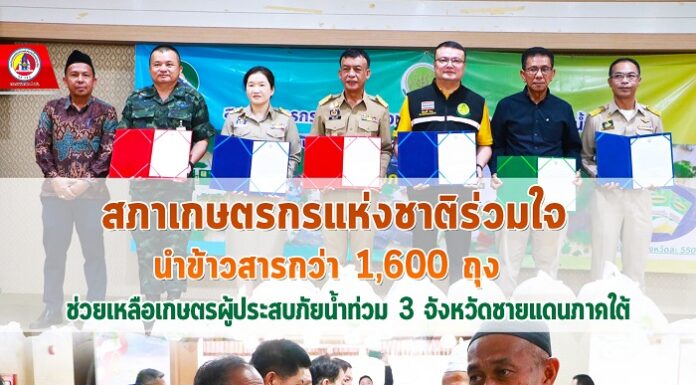 สภาเกษตรกรแห่งชาติร่วมใจ นำข้าวสารกว่า 1,600 ช่วยเหลือเกษตรผู้ประสบภัยน้ำท่วม 3 จังหวัดชายแดนภาคใต้
