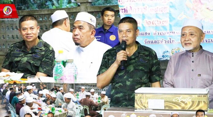 โอกาสนี้ พลตรี ไพศาล หนูสังข์ รองแม่ทัพภาคที่ 4/รองผู้อำนวยการรักษาความมั่นคงภายในภาค 4 ส่วนหน้าได้กล่าวอวยพรแก่พี่น้องชาวมุสลิมในพื้นที่จังหวัดชายแดนภาคใต้ให้เดือนรอมฏอนสันติสุขเปี่ยมไปด้วยความสุข ได้ปฏิบัติศาสนกิจ ด้วยความมุ่งมั่น ทุ่มเท และมีจิตใจที่สงบ ซึ่งในช่วงเดือนรอมฏอนสันติสุขนี้ กองอำนวยการรักษาความมั่นคงภายในภาค4...