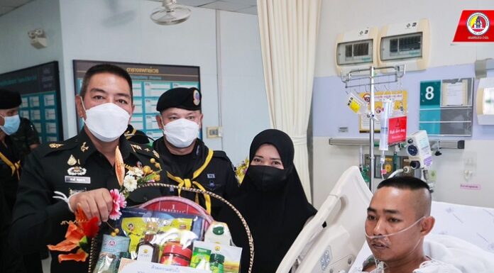 มทภ. 4 เข้าเยี่ยมกำลังพลที่ได้รับบาดเจ็บ จากการปฏิบัติภารกิจลาดตระเวน ตรวจสอบแหล่งหลบซ่อนพักพิงของผู้ก่อเหตุรุนแรง