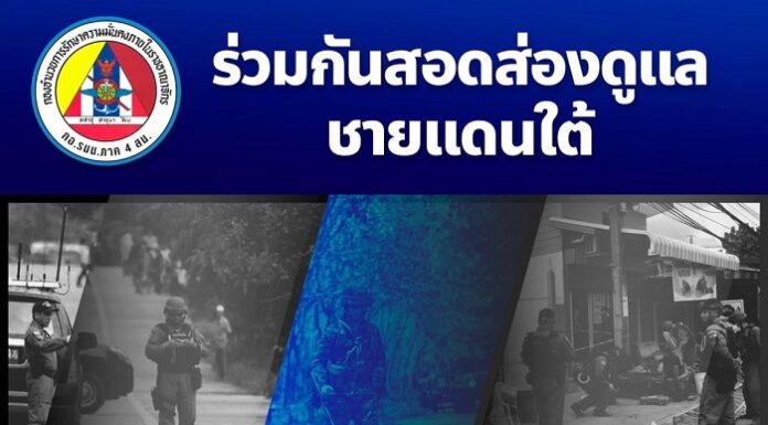 ร่วมกันสอดส่องดูแลชายแดนใต้ สายด่วน 1341 พบเห็นสิ่งผิดปกติหรือบุคคลต้องสงสัยเข้ามาเคลื่อนไหวในพื้นที่ แจ้งได้ที่เบอร์สายตรงแม่ทัพภาคที่ 4 โทร. 061-1732999 และสายด่วน 1341 หรือหน่วยเฉพาะกิจในพื้นที่ได้ตลอด 24 ชั่วโมง