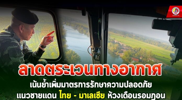 ลาดตระเวนทางอากาศ เน้นย้ำเพิ่มมาตรการรักษาความปลอดภัยแนวชายแดน ไทย – มาเลเซีย ห้วงเดือนรอมฎอน