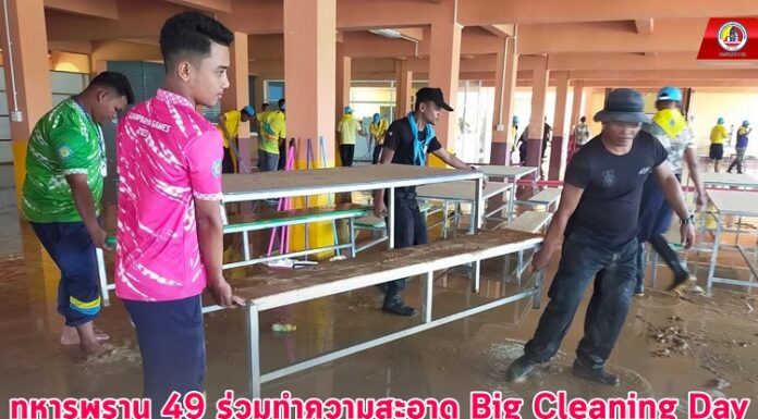ทหารพราน 49 ร่วมทำความสะอาด Big Cleaning Day โรงเรียนสวนพระยาวิทยา ตำบลดุซงญอ ฟื้นฟูช่วงหลังจากน้ำลด