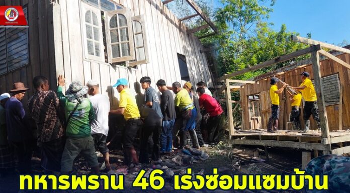 ทหารพราน 46 เร่งซ่อมแซมบ้านให้กับผู้ได้รับผลกระทบจากอุทกภัยในพื้นที่ อ.รือเสาะ จ.นราธิวาส