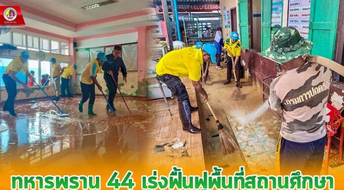 ทหารพราน 44 เร่งฟื้นฟูพื้นที่สถานศึกษา ให้กลับมาสู่สภาพปกติหลังจากผ่านพ้นสภาวะน้ำท่วม