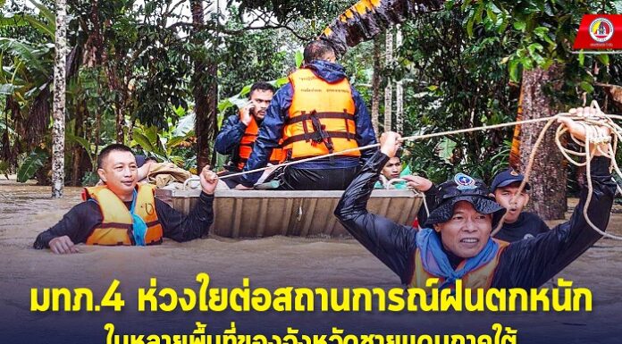 แม่ทัพภาคที่ 4 ห่วงใยต่อสถานการณ์ฝนตกหนักในหลายพื้นที่ของจังหวัดชายแดนภาคใต้ สั่งการหน่วยทหารในพื้นที่ เตรียมพร้อมกำลังพลและยุทโธปกรณ์เร่งเข้าช่วยเหลือพี่น้องประชาชนอย่างทันท่วงที