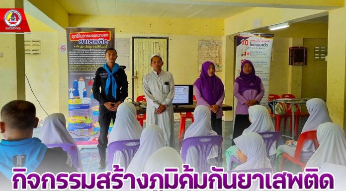 เมื่อวันที่ 16 ธันวาคม 2566 เวลา 08.00 น. ณ มัสยิดนูรุลอิสลาม บ้านตะโล๊ะมีแย หมู่ที่ 4 ตำบลกาลอ อำเภอรามัน จังหวัดยะลา หน่วยเฉพาะกิจกรมทหารพรานที่ 41 จัดกำลังพลชุดปฏิบัติการกิจการพลเรือน กองร้อยทหารพรานที่ 4103 พร้อมด้วย นายมือเส๊าะ หะนะกาแม โต๊ะอิหม่ามประจำมัสยิดนูรุลอิสลามบ้านตะโล๊ะมีแย และคณะวิทยากรกระบวนการสมาคมป้องกันและแก้ปัญหายาเสพติดจังหวัดชายแดนภาคใต้ จังหวัดยะลา ร่วมกับ สำนักงานป้องกันและปราบปรามยาเสพติด ภาค 9 จัดกิจกรรมสร้างภูมิคุ้มกันยาเสพติดให้กับเด็กนักเรียนในโรงเรียน เพื่อให้เด็กนักเรียนมีความรู้เกี่ยวกับยาเสพติด สามารถสร้างเกราะป้องกันที่ดี และห่างไกลยาเสพติด อีกทั้งลดปัญหายาเสพติดภายในชุมชน