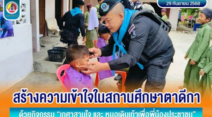 สร้างความเข้าใจในสถานศึกษาตาดีกา ด้วยกิจกรรม “เกศาสานใจ และ หมอเดินเท้าเพื่อพี่น้องประชาชน”