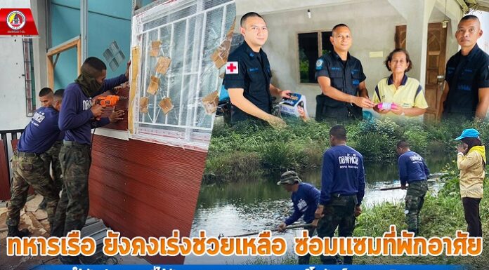 ทหารเรือ ยังคงเร่งช่วยเหลือ ซ่อมแซมที่พักอาศัย ให้กับประชาชนที่ได้รับผลกระทบจากเหตุการณ์โกดังเก็บพลุระเบิด รวมทั้งร่วมกิจกรรมจิตอาสาบำเพ็ญสาธารณประโยชน์ และมอบแว่นตาให้ประชาชนในพื้นที่