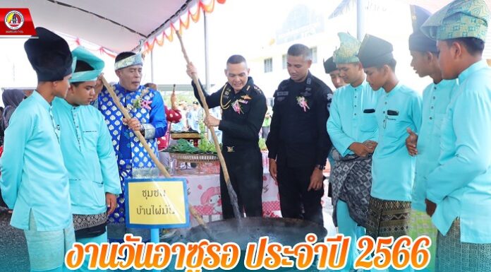 เมื่อวันที่ 9 กันยายน 2566 เวลา 07.00 น. พันเอก อรรถวิทย์ ประภามณฑล หัวหน้ากองกิจการพลเรือน มณฑลทหารบกที่ 46 เป็นผู้แทน ผู้บัญชาการมณฑลทหารบกที่ 46 ร่วมงานวันอาซูรอ ประจำปี 2566 ณ เทศบาลตำบลบ่อทอง อำเภอหนองจิก จังหวัดปัตตานี เพื่อสืบสานวัฒนธรรมประเพณีท้องถิ่นให้คงอยู่ สร้างความสามัคคีปรองดองกันของประชาชนในชุมชน รวมทั้งเป็นการปลูกจิตสำนึกให้ประชาชน และเยาวชนในพื้นที่เกิดความตระหนัก และเข้ามามีส่วนร่วมในการอนุรักษ์ สืบสานภูมิปัญญาและคุณค่าความหลากหลายทางวัฒนธรรมและวิถีชุมชน อีกทั้งยังเป็นการสร้างความสัมพันธ์อันดีระหว่างเจ้าหน้าที่ของรัฐกับชุมชนอีกด้วย