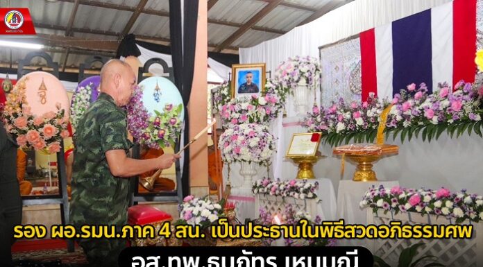 รอง ผอ.รมน.ภาค 4 สน. เป็นประธานในพิธีสวดอภิธรรมศพ อส.ทพ.ธนภัทร เหมมณี ซึ่งเสียชีวิตจากเหตุการณ์ความรุนแรงในพื้นที่ จชต.