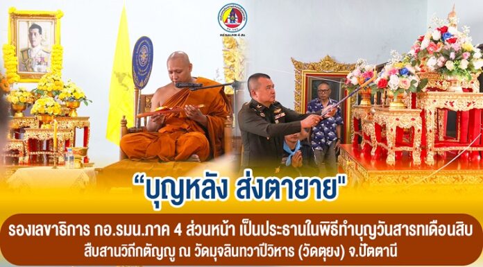 “บุญหลัง ส่งตายาย” รองเลขาธิการ กอ.รมน.ภาค 4 ส่วนหน้า เป็นประธานในพิธีทำบุญวันสารทเดือนสิบ สืบสานวิถีกตัญญู ณ วัดมุจลินทวาปีวิหาร (วัดตุยง) จ.ปัตตานี