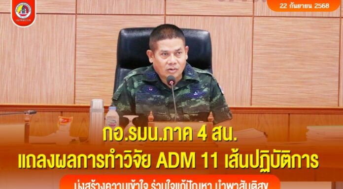 กอ.รมน.ภาค 4 สน. แถลงผลการทำวิจัย ADM 11 เส้นปฏิบัติการ มุ่งสร้างความเข้าใจ ร่วมใจแก้ปัญหา นำพาสันติสุข