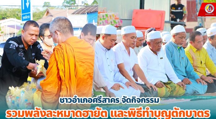 ชาวอำเภอศรีสาคร จัดกิจกรรมรวมพลังละหมาดฮายัต และพิธีทำบุญตักบาตร ต่อต้านความรุนแรงในพื้นที่ ร่วมปฏิเสธความรุนแรง ขอพรจากองค์อัลลอฮ์ ช่วยดลบันดาลยุติความรุนแรงในพื้นที่