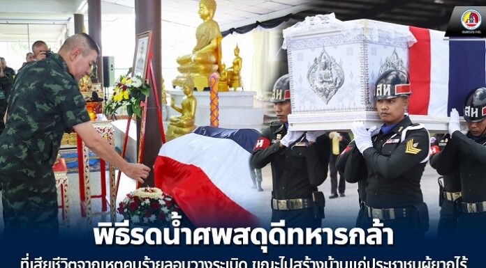 แม่ทัพภาคที่ 4 เป็นประธานในพิธีรดน้ำศพสดุดีทหารกล้า ที่เสียชีวิตจากเหตุคนร้ายลอบวางระเบิด ขณะไปสร้างบ้านแก่ประชาชนผู้ยากไร้ ในพื้นที่ อ.ศรีสาคร จ.นราธิวาส พร้อมส่งศพทหารกล้าอย่างสมเกียรติกลับภูมิลำเนา ท่ามกลางบรรยากาศเป็นไปอย่างโศกเศร้า