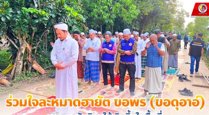 ร่วมใจละหมาดฮายัต ขอพร (ขอดุอาอ์) ขอความสันติสุขให้เกิดขึ้นในพื้นที่ หลังเกิดเหตุระเบิดเจ้าหน้าที่ชุดช่าง โครงการ ฉก.นราธิวาส ซ่อมสร้างปันสุข