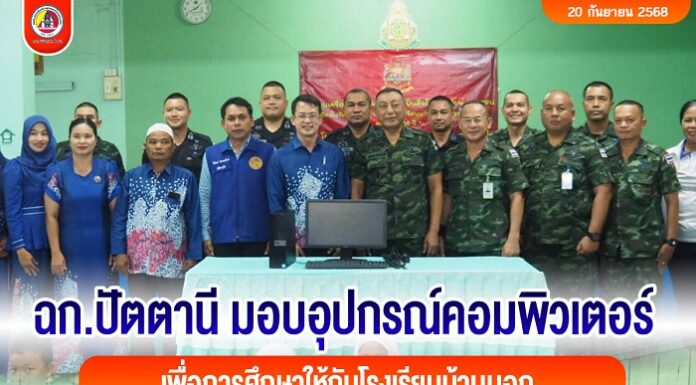 เมื่อวันที่ 19 กันยายน 2568 เวลา 14.00 น. ที่ โรงเรียนบ้านนอก ตำบลบ้านนอก อำเภอปะนาเระ จังหวัดปัตตานี พลตรี ขจรศักดิ์ อินทร์ทอง ผู้บัญชาการมณฑลทหารบกที่ 46 / ผู้บังคับหน่วยเฉพาะกิจปัตตานี เป็นประธานในพิธีมอบอุปกรณ์คอมพิวเตอร์เพื่อการศึกษาให้กับโรงเรียนบ้านนอก เพื่อเสริมสร้างโอกาสทางการศึกษาให้แก่เยาวชนในพื้นที่ห่างไกล รวมถึงเป็นการสร้างความเข้าใจอันดีระหว่างเจ้าหน้าที่รัฐและประชาชนในพื้นที่ โดยมี พันเอก ณัฐวุฒิ ศรีสังข์ ผู้บังคับหน่วยเฉพาะกิจกรมทหารพรานที่ 44 พันเอก ชาญฤทธิ์ ฮันสราช ผู้บังคับหน่วยเฉพาะกิจกรมทหารพรานที่ 43, ผู้แทนหน่วยเฉพาะกิจกรมทหารที่ 22 พร้อมด้วยกำลังพล ตลอดจนคณะครู บุคลากรทางการศึกษา และนักเรียนเข้าร่วมกิจกรรม