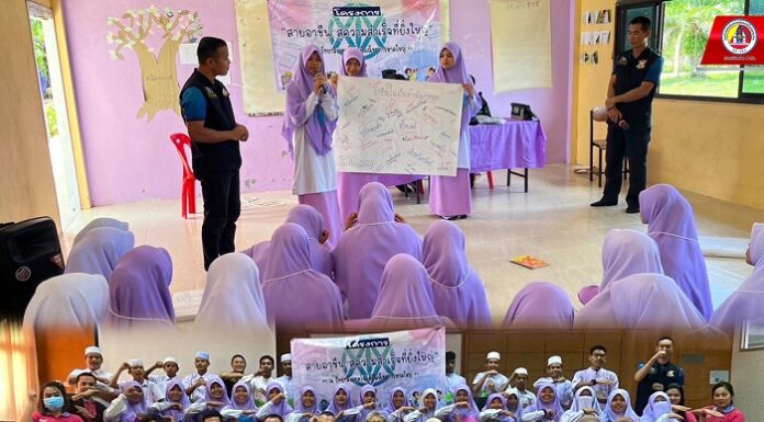 วันที่ 31 มกราคม 2567 ที่ โรงเรียนจริยศาสน์อิสลาม ตำบลปากบาง อำเภอเทพา จังหวัดสงขลา เจ้าหน้าที่ชุดสันติสุขที่ 502 ร่วมกับ ชุดทักษิณสัมพันธ์ที่ 552 หน่วยเฉพาะกิจสันติสุข จัดโครงการ “สายอาชีพ สู่ความสำเร็จที่ยิ่งใหญ่” ต่อยอดและสร้างแรงบันดาลใจเปิดประสบการณ์ด้านการศึกษาสายอาชีพ นำนักเรียนโรงเรียนจริยศาสน์ อิสลาม ระดับมัธยมศึกษาชั้น ม.3 และชั้น ม. 6 ไปทัศนศึกษาเปิดประสบการณ์นอกห้องเรียน ยังวิทยาลัยเทคโนโลยีพณิชยการหาดใหญ่ อำเภอหาดใหญ่ สงขลา ซึ่งเป็นวิทยาลัยลำดับต้นด้านสายชีพในพื้นที่ ที่สามารถผลิตนักศึกษาสายอาชีพที่มีคุณภาพ เป็นที่ต้องการของตลาดสายอาชีพ เพื่อเป็นทางเลือกในการต่อดยอดด้านการศึกษาให้แก่นักเรียนในโรงเรียนเอกชนสอนศาสนาอิสลาม สำหรับการศึกษาดูงานครั้งนี้ทำให้นักเรียนได้สัมผัสสถานศึกษาสายอาชีพได้เห็นรูปแบบการเรียนการสอนการศึกษาสายอาชีพ ซึ่งสามารถสร้างแรงบันดาลใจแก่เด็กนักเรียนในการต่อยอดด้านการศึกษา ด้านอาชีพได้ในอนาคต