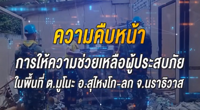 กอ.รมน.ภาค 4 สน. รายงานความคืบหน้าการซ่อมแซมบ้านพัก และการช่วยเหลือผู้ประสบภัยบริเวณตลาดมูโนะ อ.สุไหงโก – ลก จ.นราธิวาส ประจำวันที่ 13 ส.ค.66 ล่าสุดซ่อมแซมและส่งมอบบ้านแล้ว 280 หลัง