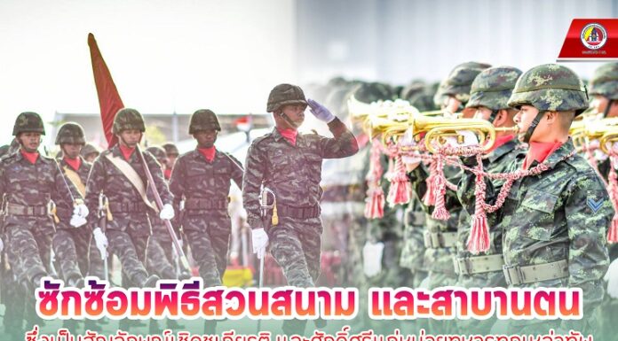 ร่วมซักซ้อมกระทำพิธีสวนสนาม และสาบานตน พิธีกรรมอันศักดิ์สิทธิ์สูงสุด ซึ่งเป็นสัญลักษณ์เชิดชูเกียรติ และศักดิ์ศรีแก่หน่วยทหาร ทุกเหล่าทัพ เนื่องในวันกองทัพไทย 18 มกราคม ของทุกปี
