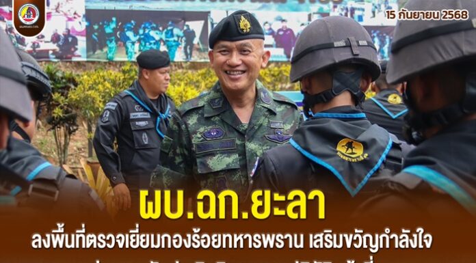 ผบ.ฉก.ยะลา ลงพื้นที่ตรวจเยี่ยมกองร้อยทหารพราน เสริมขวัญกำลังใจ มุ่งยกระดับประสิทธิภาพการปฏิบัติหน้าที่