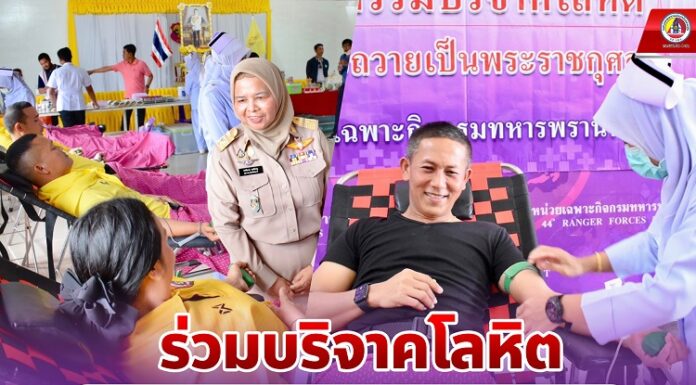เมื่อวันที่ 25 กรกฎาคม 2566 เวลา 09.30 น. พันเอก ภาคภูมิ จันทรักษ์ ผู้บังคับหน่วยเฉพาะกิจกรมทหารพรานที่ 44 จัดกำลังพล ร่วมใจกันบริจาคโลหิต ถวายเป็นพระราชกุศลแด่ พระบาทสมเด็จพระปรเมนทรรามาธิบดีศรีสินทรมหาวชิราลงกรณ พระวชิรเกล้าเจ้าอยู่หัว (รัชกาลที่ 10) เนื่องในโอกาสวันเฉลิมพระชนมพรรษา วันที่ 28 กรกฎาคม 2566 โดย สำนักงานเหล่ากาชาดจังหวัดปัตตานี ได้เข้ามาดำเนินการรับโลหิต ณ กองบังคับการหน่วยเฉพาะกิจกรมทหารพรานที่ 44 ตำบลปะเสยะวอ อำเภอสายบุรี จังหวัดปัตตานี เพื่อนำโลหิตที่ได้รับจากการบริจาคในครั้งนี้ ไปช่วยเหลือพี่น้องประชาชน และผู้ป่วยที่มีความต้องการ ตามโรงพยาบาล สถานพยาบาลต่างๆ ในพื้นที่จังหวัดชายแดนภาคใต้ ภายใต้คำกล่าวที่ว่า “สุขใจผู้ให้... ต่อลมหายใจผู้รับ”