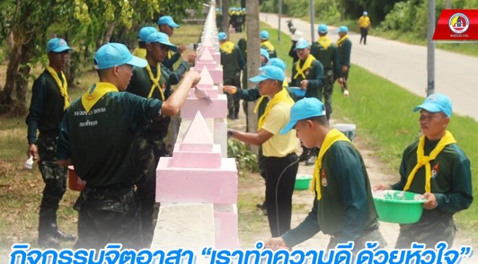 กองพันทหารราบที่ 2 กรมทหารราบที่ 153 นำกำลังพลจิตอาสาพระราชทานของหน่วย ร่วมกับ นิสิต นักศึกษา และบุคลากรของมหาลัย ร่วมกิจกรรมจิตอาสา “เราทำความดี ด้วยหัวใจ” พัฒนาศาสนสถาน ปรับปรุงภูมิทัศน์ มหาวิทยาลัยมหาจุฬาลงกรณราชวิทยาลัย วิทยาลัยสงฆ์ปัตตานี ตำบลรูสะมิแล อำเภอเมือง จังหวัดปัตตานี โดยได้ร่วมกันดำเนินการปรับปรุงภูมิทัศน์ ขัดล้าง ทาสี กำแพงรั้ว เพื่อให้มีสภาพสวยงาม เป็นที่น่ามองต่อประชาชนผู้สัญจรไป-มา เนื่องจากสีกำแพงรั้วมหาวิทยาลัยได้มีสภาพเก่า ซีด สีหลุดร่อน บางจุดมีรอยแตกร้าวทรุดโทรมจากการใช้งานมานาน