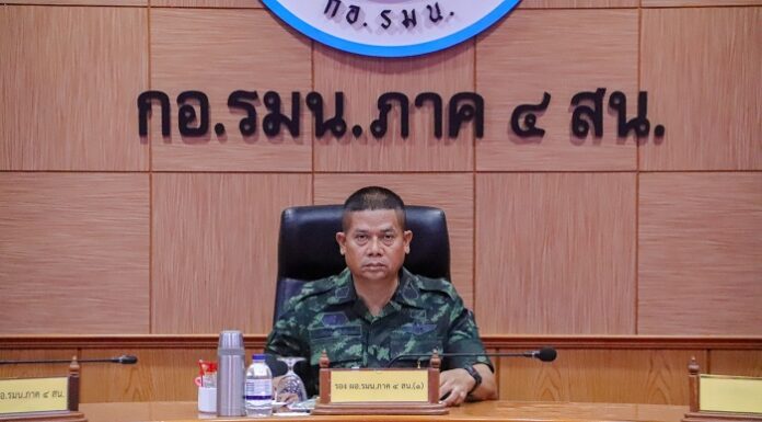 เมื่อวันที่ 24 กรกฎาคม 2566 เวลา 09.30 น. พลตรี ไพศาล หนูสังข์ รองผู้อำนวยการรักษาความมั่นคงภายในภาค 4 ส่วนหน้า เป็นประธานในการประชุมชี้แจงทบทวนขั้นตอนการปฏิบัติ เพื่อหารือ รับทราบปัญหา และแนวทางในการบังคับใช้กฎหมายเพื่อไม่ให้เกิดความสูญเสีย และเกิดเงื่อนไขในการปฏิบัติของหน่วย ณ ห้องประชุม 1 กองอำนวยการรักษาความมั่นคงภายในภาค 4 ส่วนหน้า ค่ายสิรินธร ตำบลเขาตูม อำเภอยะรัง จังหวัดปัตตานี โดยมี พันเอก สฐิรพงษ์ อาจหาญ ผู้บังคับกองกำลังทหารพรานจังหวัดชายแดนภาคใต้ พร้อมด้วย พันเอก สิทธิศักดิ์ เจนบรรจง รองผู้บังคับกองกำลังทหารพรานจังหวัดชายแดนภาคใต้ และผู้บังคับบัญชาหน่วยขึ้นตรงกองอำนวยการรักษาความมั่นคงภายในภาค 4 ส่วนหน้า ร่วมประชุม
