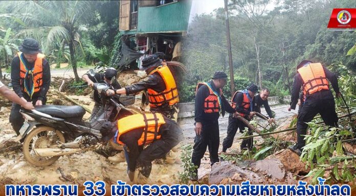 ทหารพราน 33 เข้าตรวจสอบความเสียหายบ้านเรือนประชาชน พร้อมช่วยขนย้ายสิ่งของ และตัดต้นไม้ที่ล้มกีดขวางการจราจร